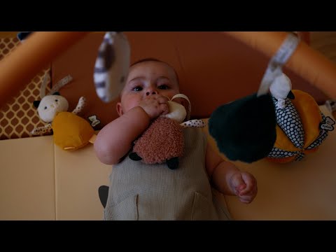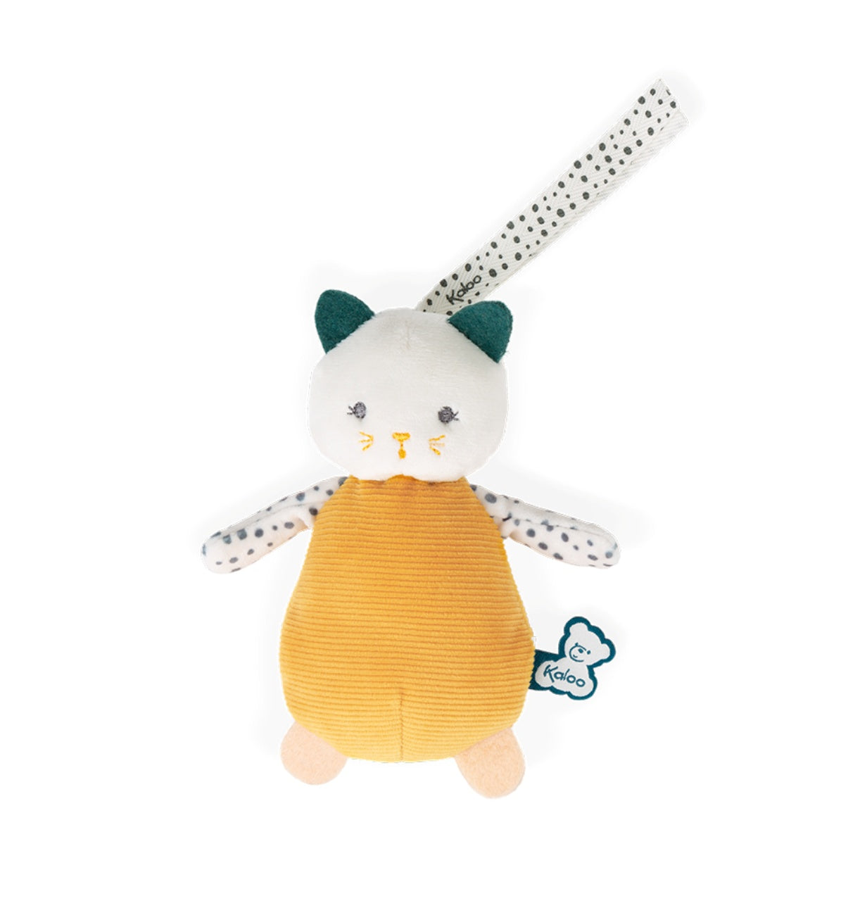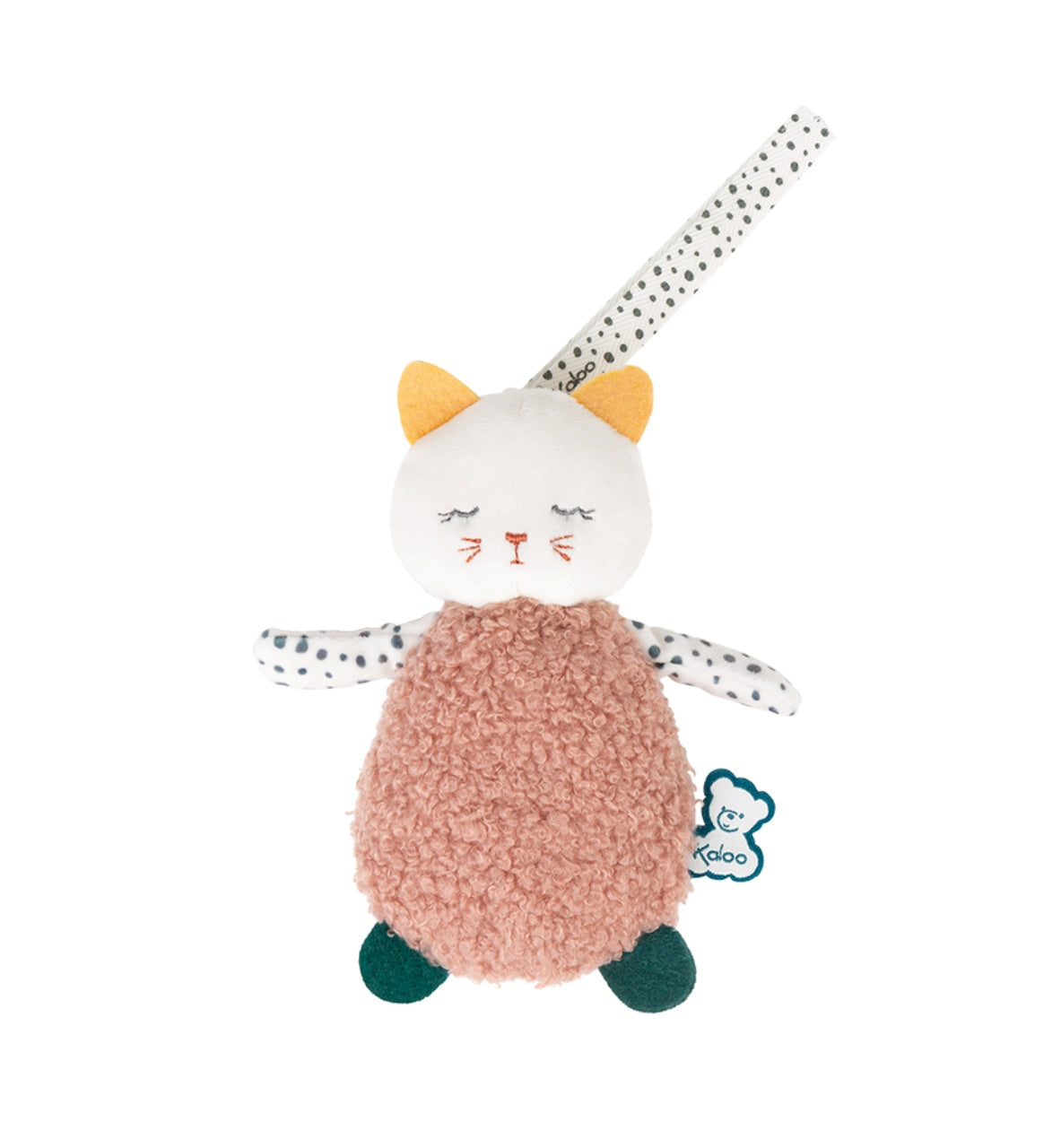 The three cats are different colours with different facial expressions. They are made of different fabrics, with different textures. They are filled with different materials, one with conventional, quiet stuffing, one with noisy, crinkly material and the third with beads.