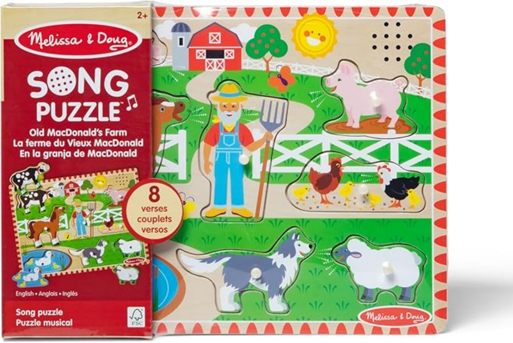 On this puzzle, the farmer Old MacDonald starts off his tune then each animal adds their bit. Children and parents can, of course, sing along too. E-I-E-I-O