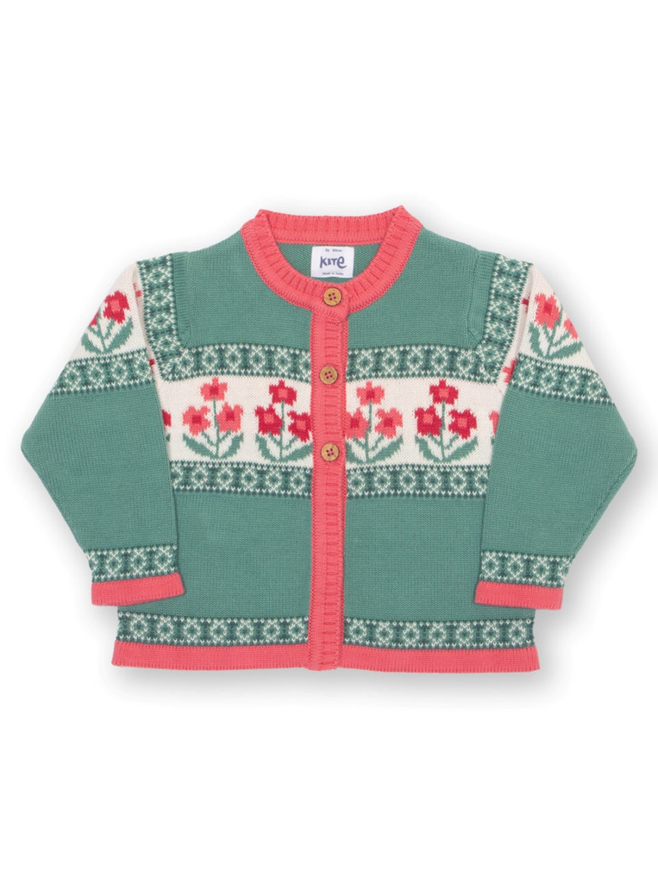 12 point jacquard knit with ribbed neck, cuffs and waist .