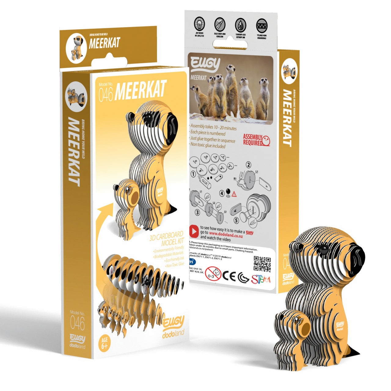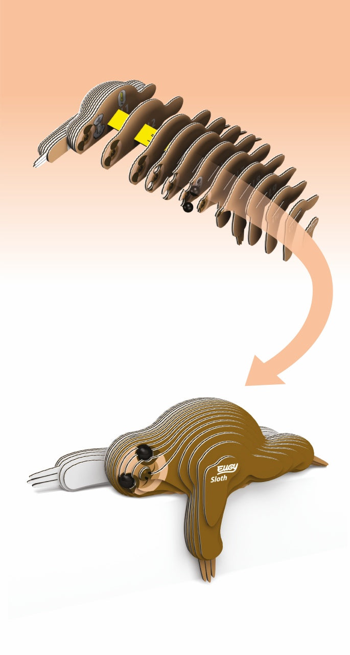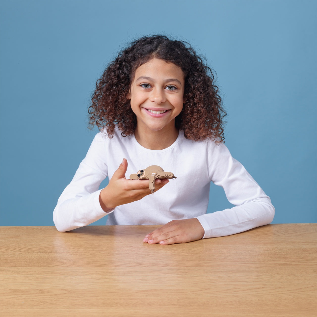 Sustainable. The cardboard can be recycled. The glue is water-based and non-toxic. The ink is rice-based. They are working on making the plastic glue tube and eyes more eco-friendly.