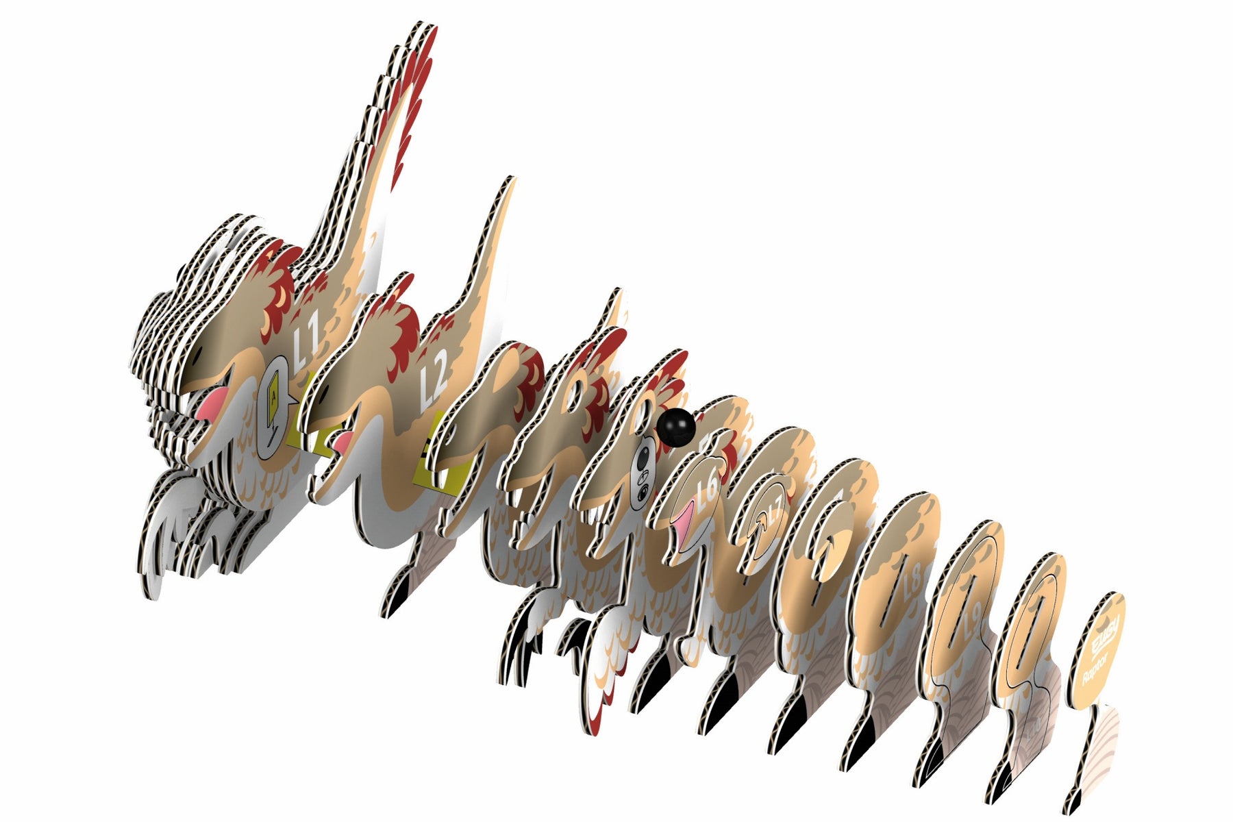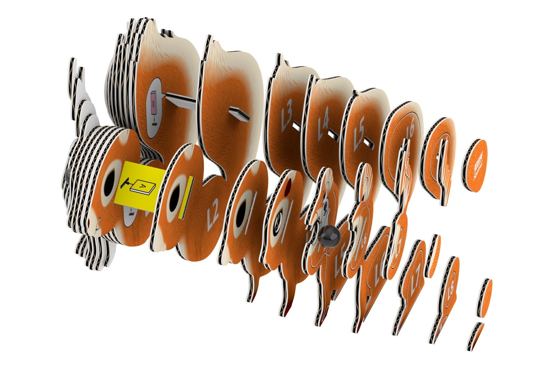 2) Start with the central piece (L1 or R1). Insert the crossbar (but don't glue it) and, using it as a guide, and glue on the next piece (L2 or R2). Layer up the pieces in numerical order, putting a little glue between each layer. It's a little fiddly but also very satisfying as you see the animal taking shape. Take care to put the pieces on in the right order as once the glue sets, you can't rectify any mistakes.