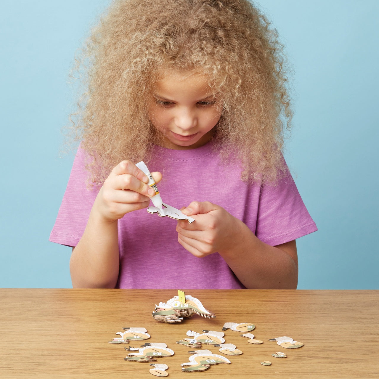 Each pack contains seven pieces of cardboard and a tube of PVA glue.