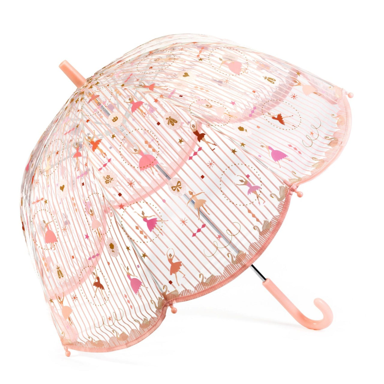 Transparent design so that children can see where they're going whilst sheltering underneath.