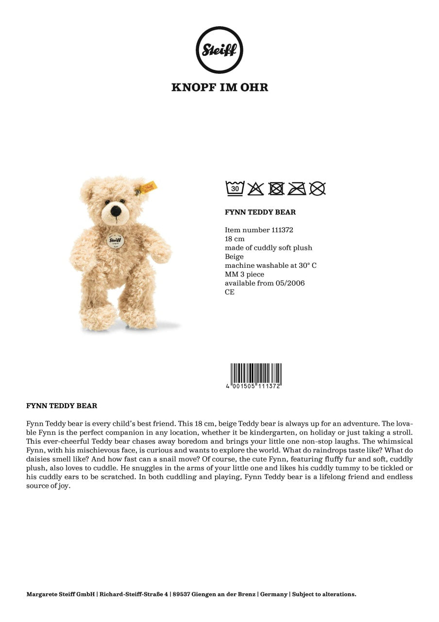 Steiff Teddy Bear - Fynn (18cm Beige)