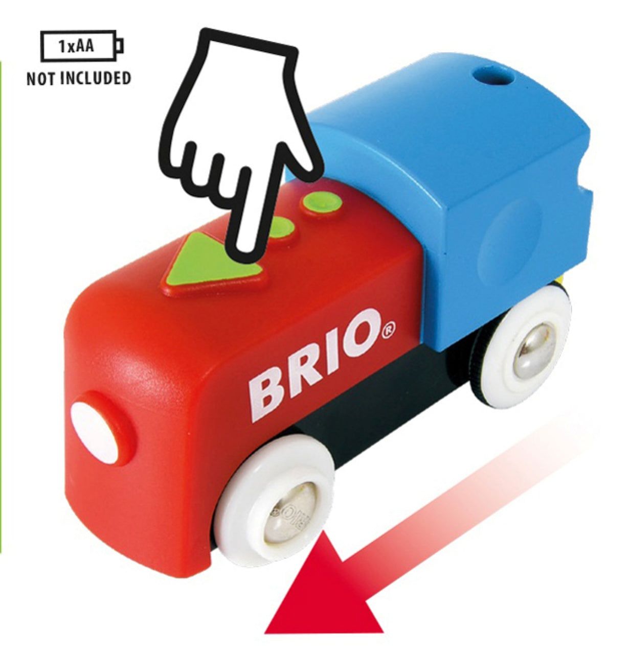 The engine takes one AA battery, sadly not included. There is a button on the top to make it go forward.