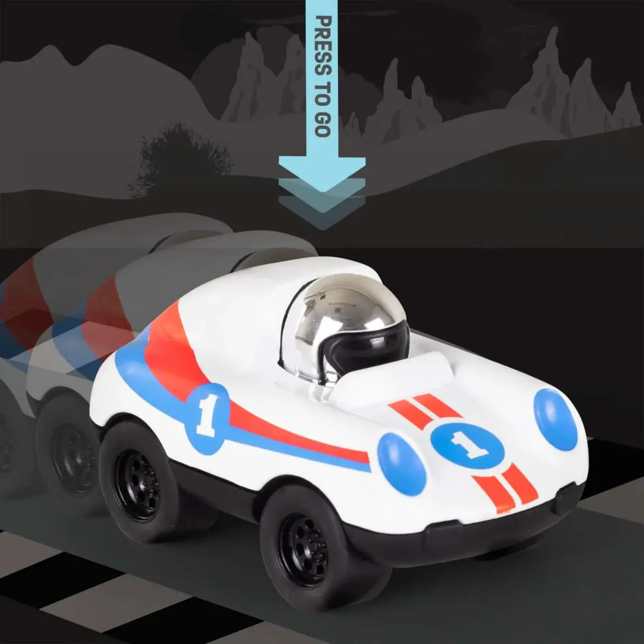 The engine takes one AA battery, sadly not included. There is a button on the top to make it go forward.